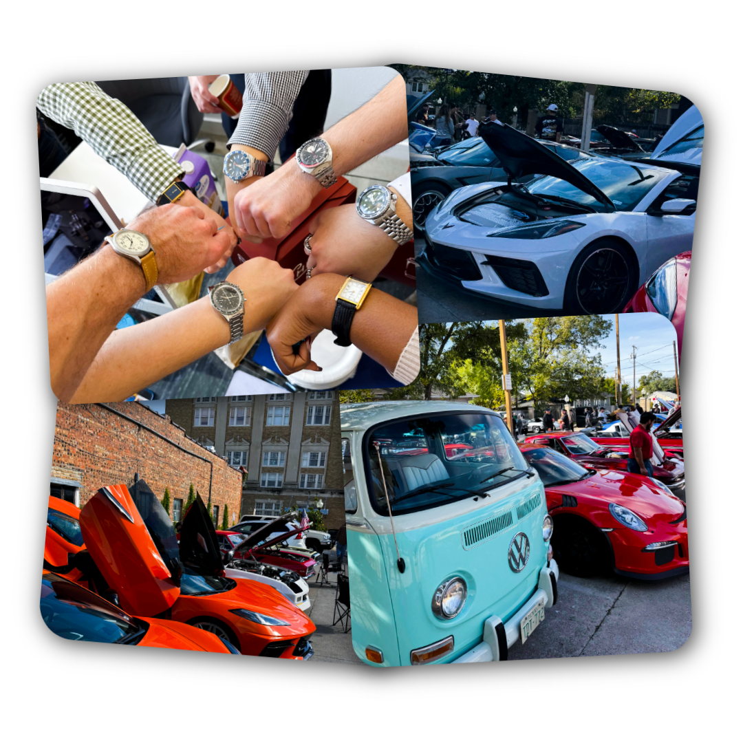 Cars, Coffee & Chronographs is a free community event hosted by The Watch Preserve in Fort Worth. It brings together car enthusiasts, watch collectors, and coffee lovers for a morning of design, craftsmanship, and conversation.